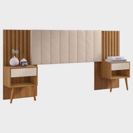 Cabeceira Para Cama Box de Casal e Queen Extensível com Mesa de Cabeceira e Capitonê CamaruPérola – Zara